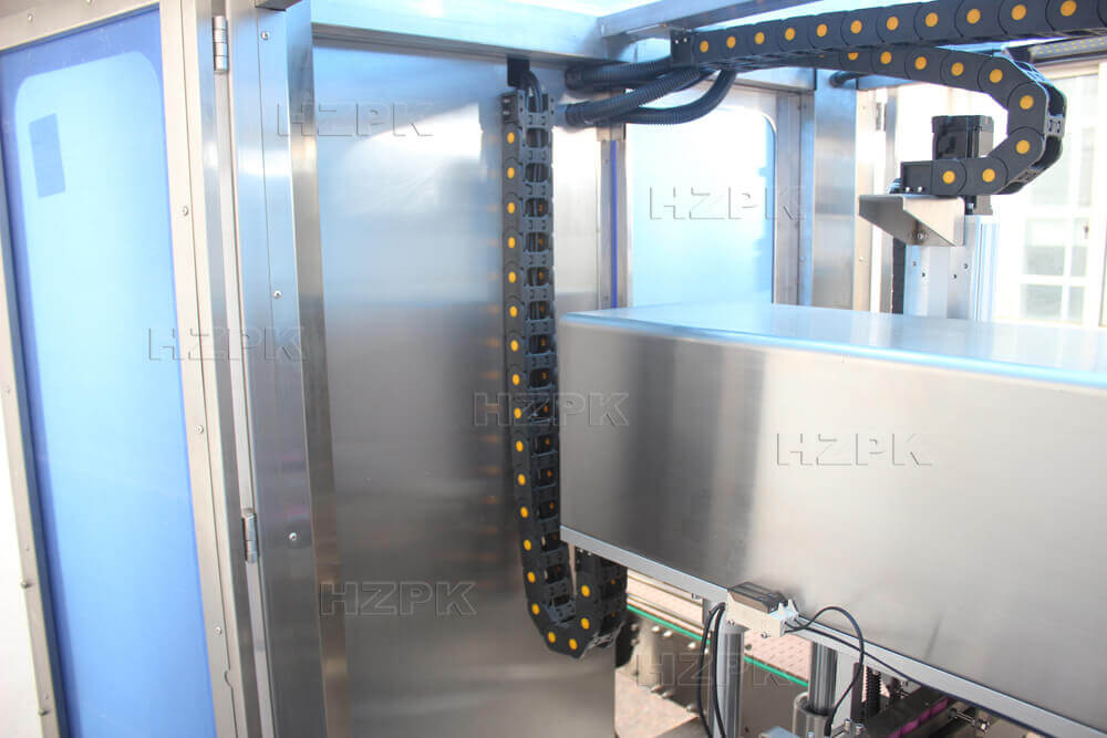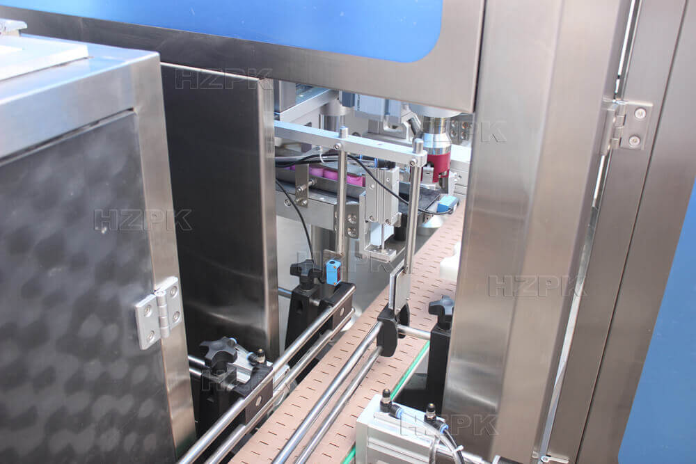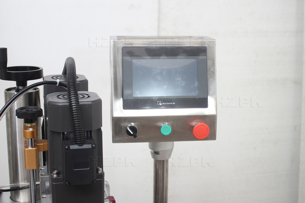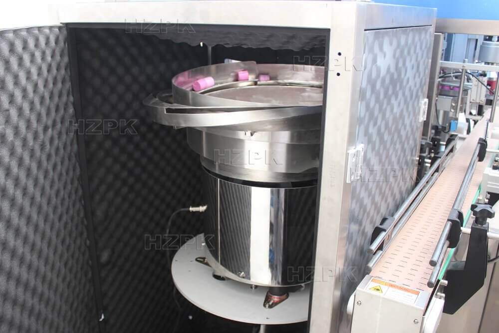 Fully automatic capping machine is designed for efficient and reliable bottle capping. Vibrating bowl that quickly arranges and feeds caps, while a rotary cap feeding system ensures high speed and stable cap delivery. Equipped with a four wheel capping mechanism, it is suitable for various bottle types, including round bottles and pump and bottles. The machine is equipped with a touchscreen and plc control system, ensuring simple operation and stable performance. The machine can be seamlessly integrated with filling machines and labeling machines to form a complete production line.