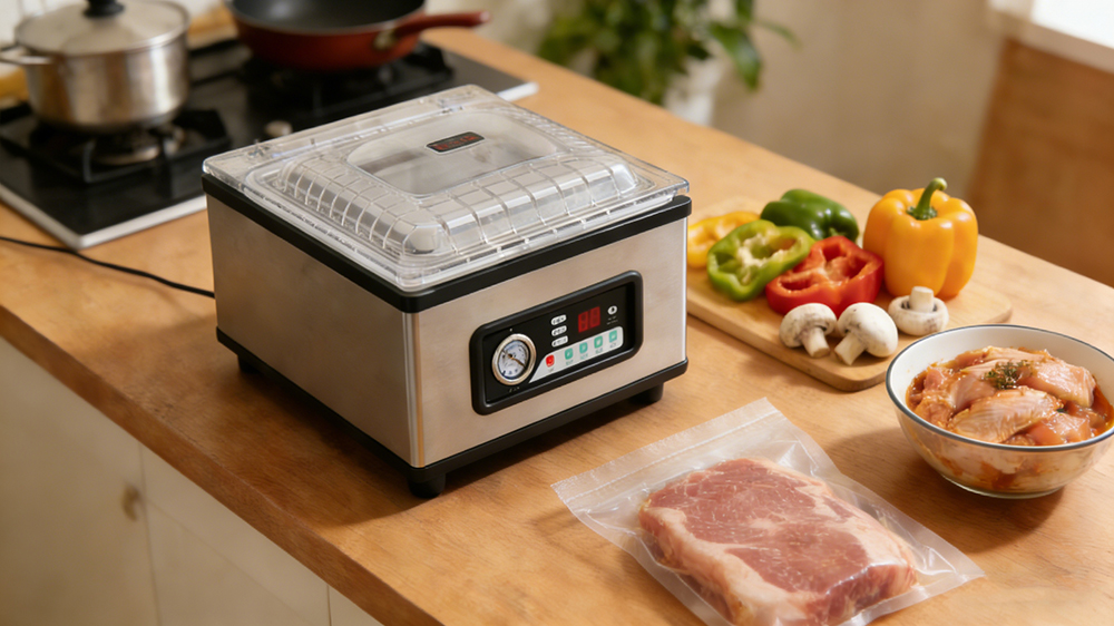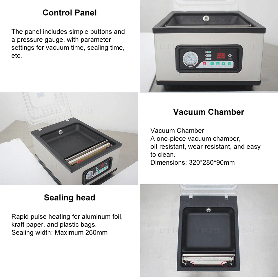 Durable Vacuum Chamber: One-piece, oil/wear-resistant design (320*280*90mm) for easy cleaning.