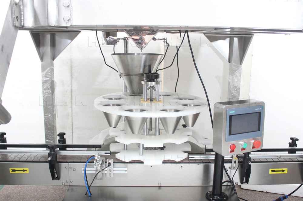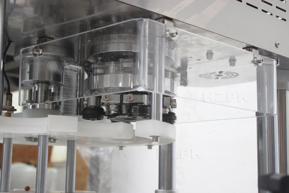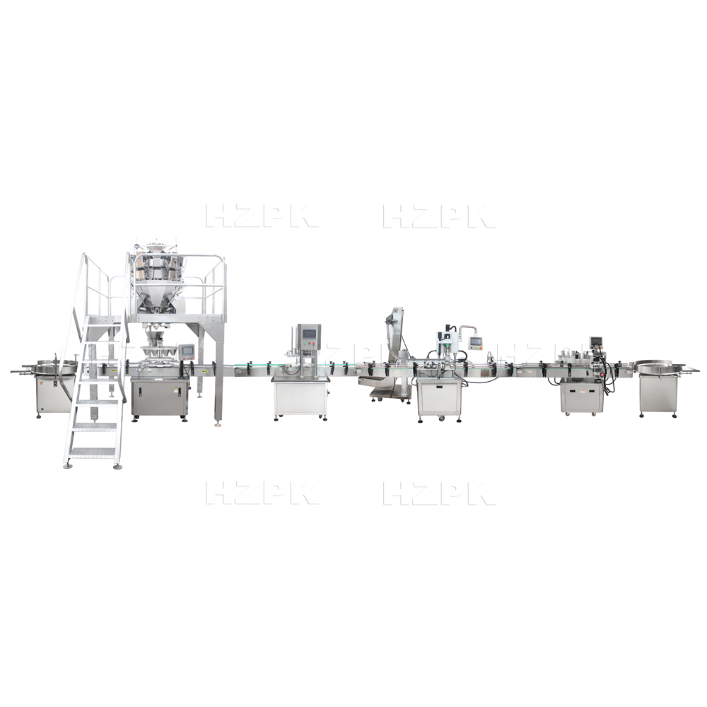 This integrated automation solution combines four core modules: computer-controlled weighing for precise high-speed filling, rotary metal sealing with robust roll-on technology, torque-controlled capping for plastic lids, and bubble-free precision labeling.