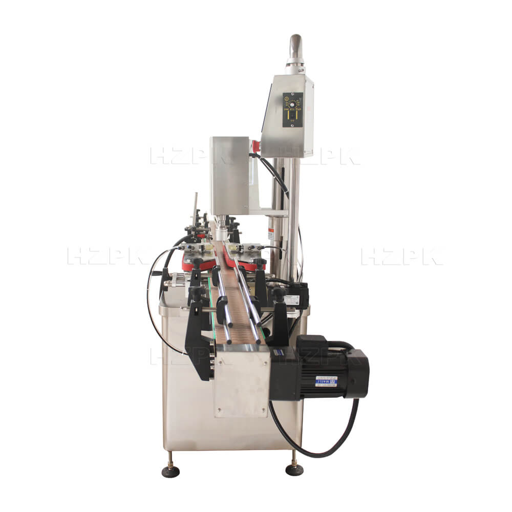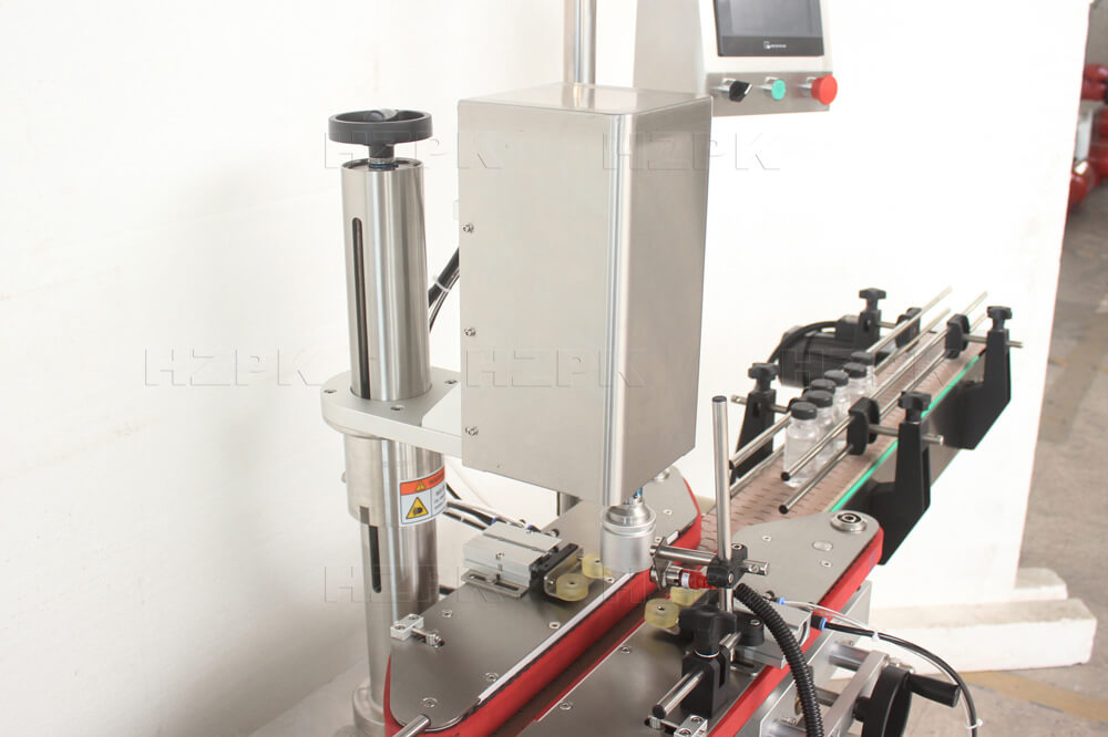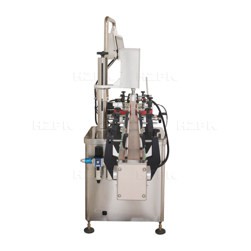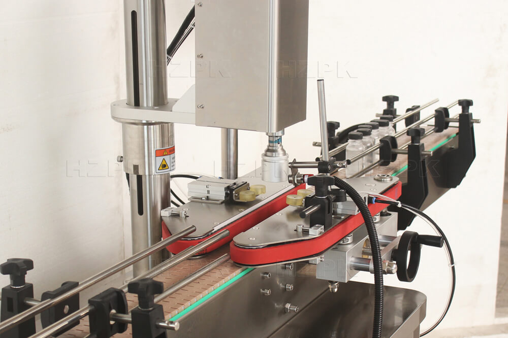 Automatic capping is suitable for capping various screw thread bottles such as water bottles, essential oil bottles, beverage bottles, and so on.double belt conveyor to clamp and quickly transfer bottles. The capping head can perform pressing and screw cap at the same time. Double cylinder clamping bottle structure ensures the bottle is tightened.