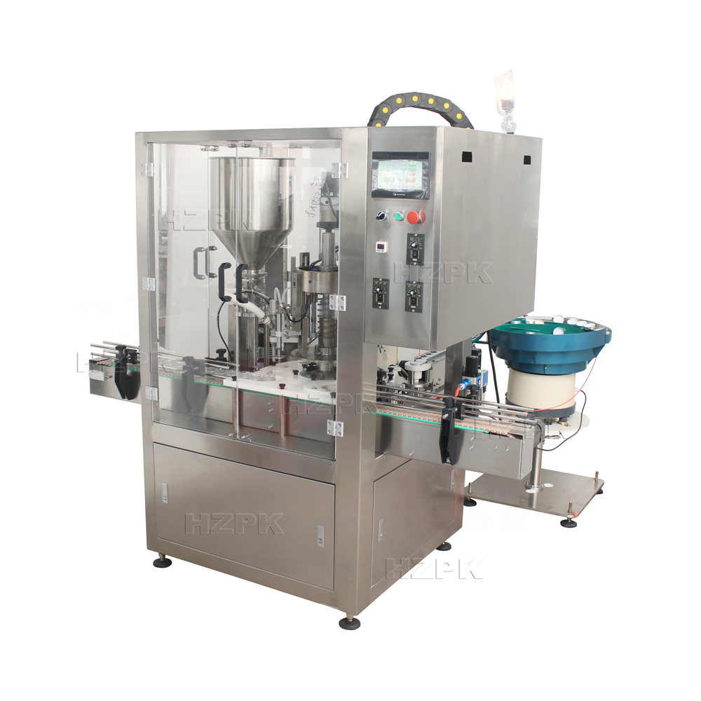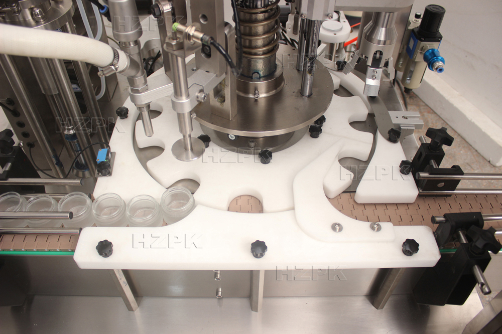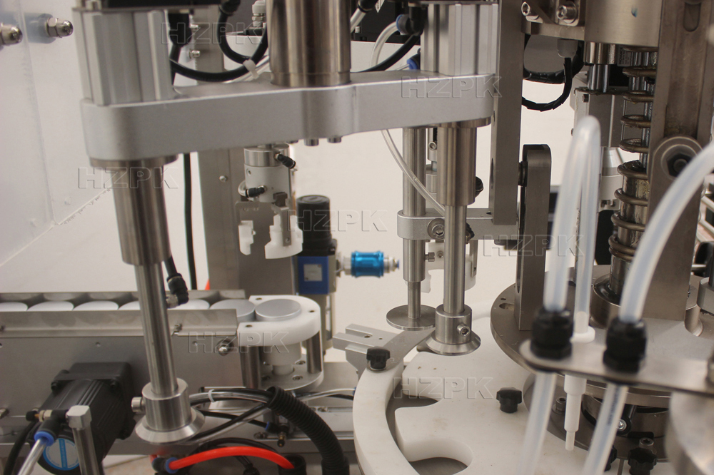 Automatic filling and capping machines are ideal equipment for the production of facial creams and essential oils.Featuring a multi station rotary design, it achieves high precision automated production.The process includes automatic filling, feeding inner caps, supplying outer caps and capping, all seamlessly integrated into the system. Two customized vibrating trays are equipped for the transfer of inner and outer caps.