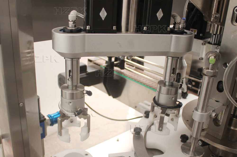 Automatic dual swing arm filling and capping machine for cream and essential oil