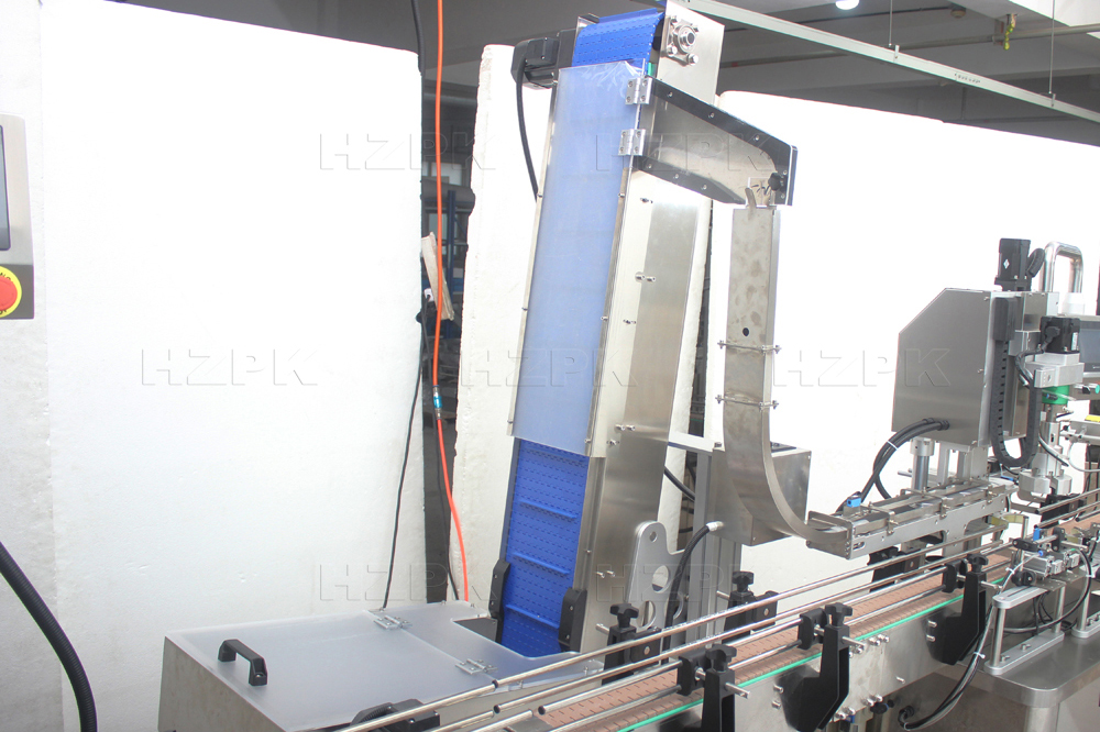 This powder filling machine uses servo-driven screw metering for high-precision volumetric filling. All material-contact parts are made of food-grade 304 stainless steel. Filling volume and speed can be easily adjusted via the touch screen. It also includes an automatic cap orienting feeder and a precision centering and gripping system for accurate capping.