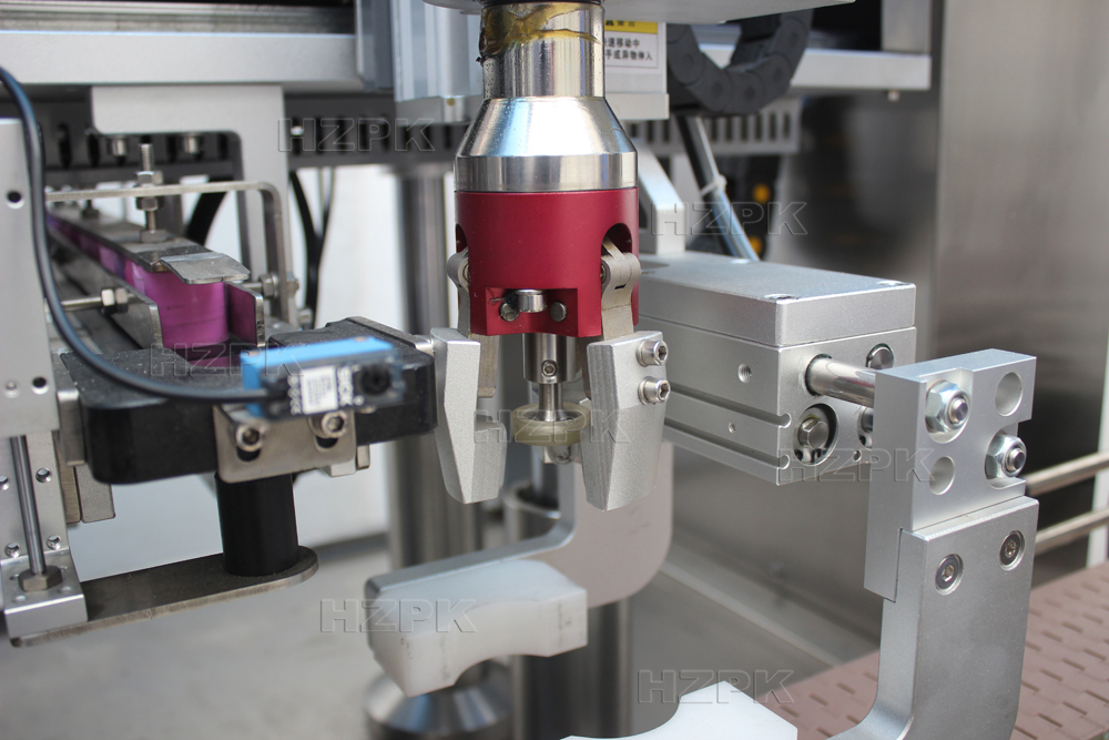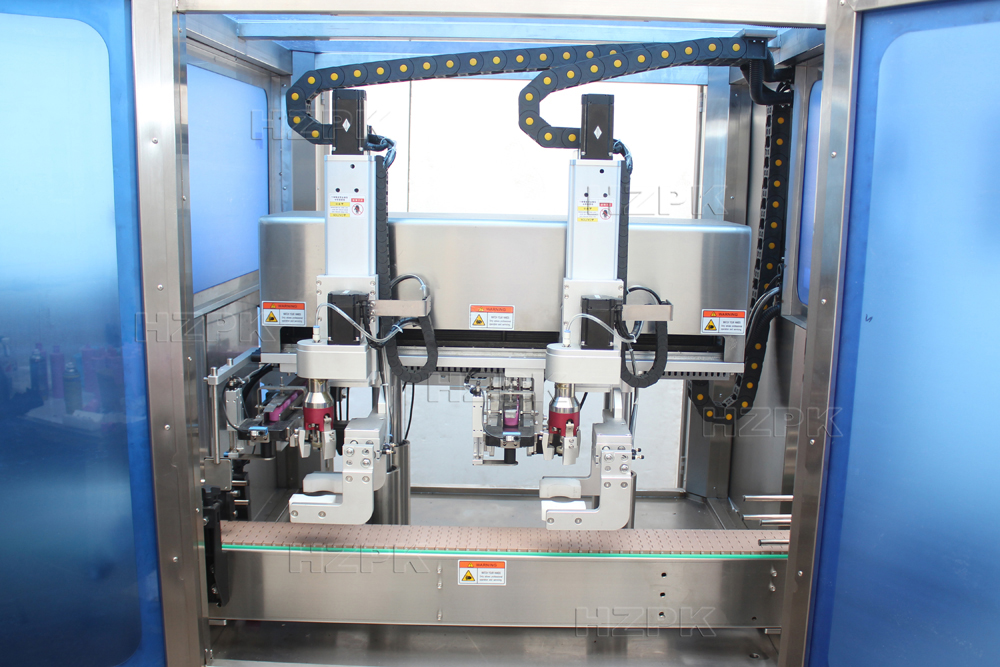This fully automatic tracking capping machine is designed for capping a wide range of bottles with high speed and precision. It features a dual head tracking capping system that follows the moving bottles, allowing continuous operation without stopping the conveyor. The machine is equipped with a customized vibration bowl for fast and orderly cap feeding, a user friendly touch screen combined with a plc control system makes operation simple and adjustments easy. This capping machine can also be integrated into a full packaging line for increased efficiency and automation.