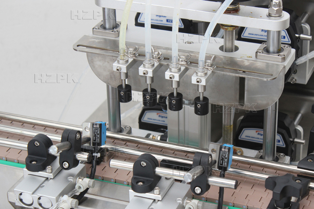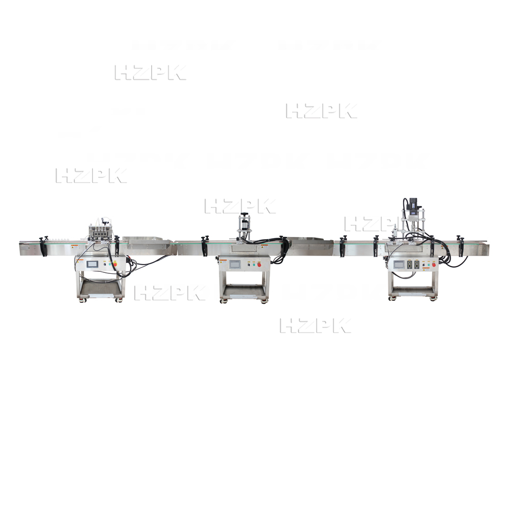The Automatic Small Bottle Essential Oil Packaging Line is a fully automated system that integrates filling, capping, and discharge. It uses a peristaltic pump for precise filling and food-grade silicone tubing for easy cleaning. Stoppers are manually placed, with the machine automating the pressing and capping. Operation is stabilized by automatic bottle alignment, and packaging parameters are easily set via a PLC and touchscreen.