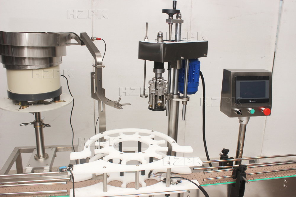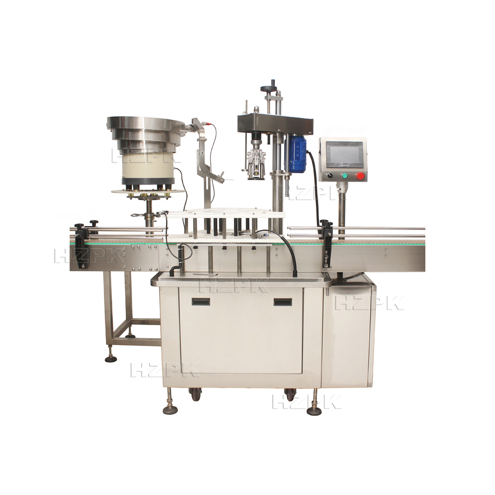 This automated line seamlessly combines a 4-head liquid filler, cap feeder, a metal cap locker, and a wine capsules shrinker. It offers a complete packaging solution, ensuring high efficiency and consistent sealing for bottles with metal closures.