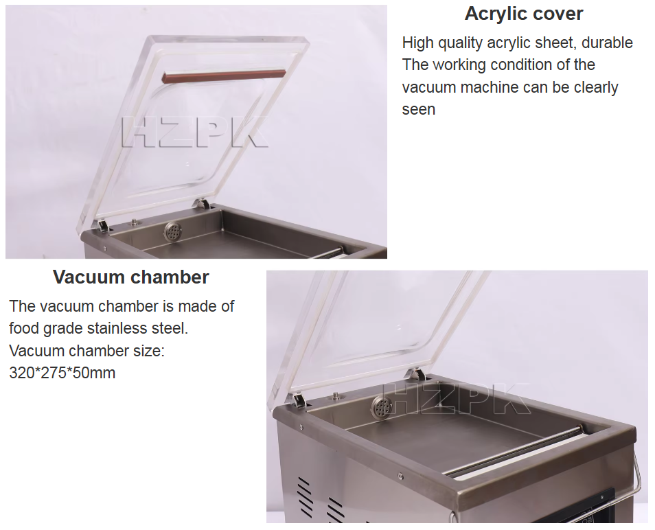 2. Easy to operate, just need to press the vacuum chamber cover, then press the set procedure to complete the vacuum pumping;