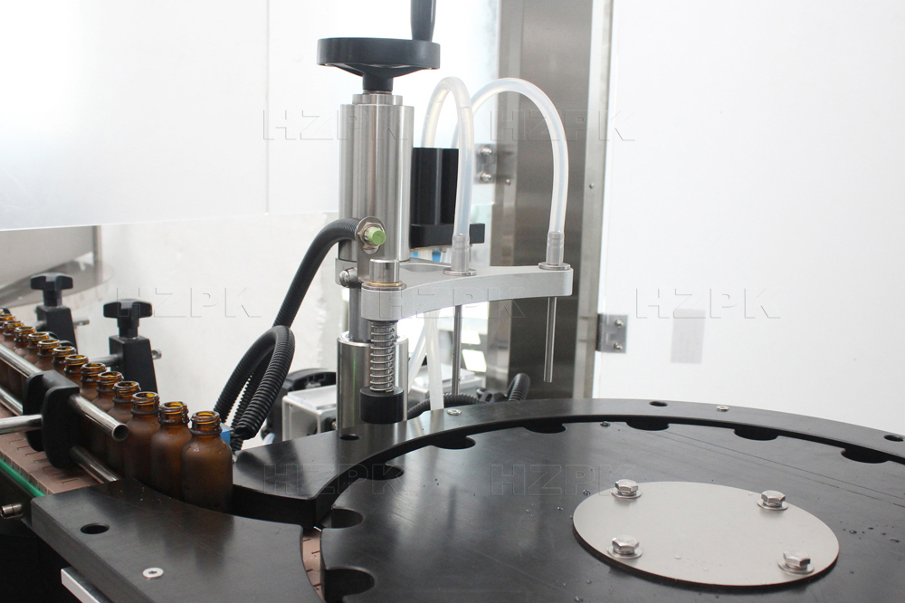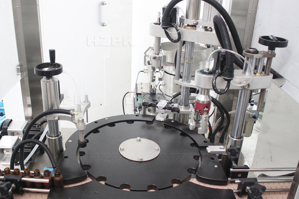 This automatic small bottle filling and capping machine integrates bottle positioning, filling, cap feeding and capping in one seamless process. Plc control system, servo driven rotary system bottles are precisely transferred through each station based on your product. The filling system can be equipped with peristaltic pumps for liquids or gear, rotor or piston pumps for viscous materials. Cap feeding and capping mechanisms are customized for different cap types. Designed for flexibility, this machine is fully customizable to suit your bottles and production needs.