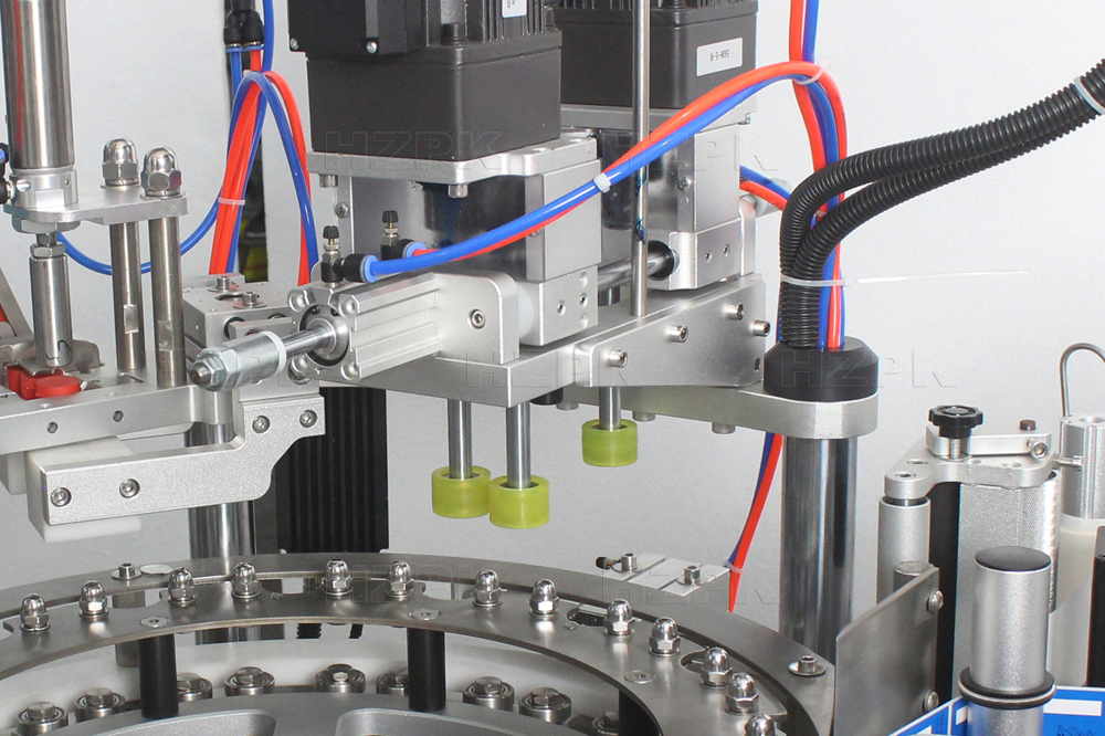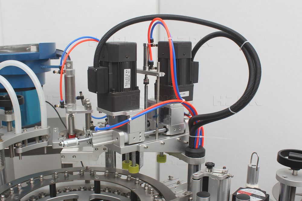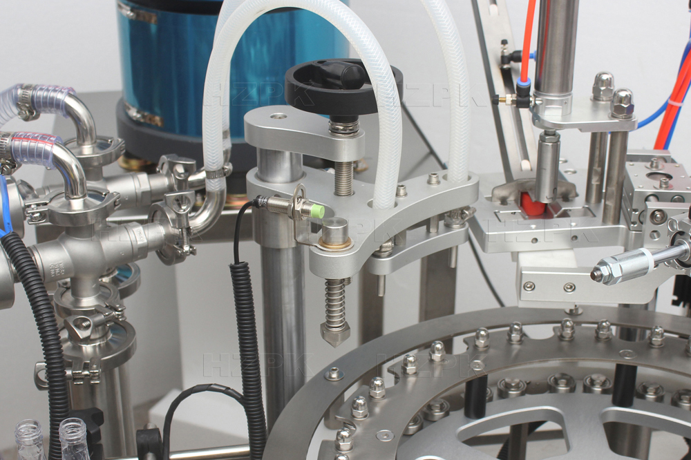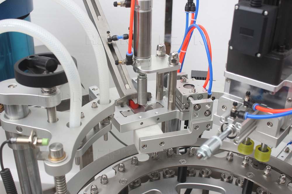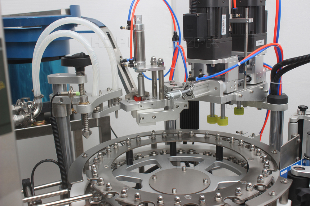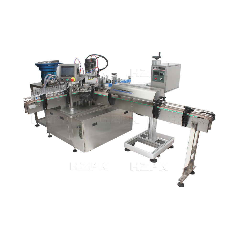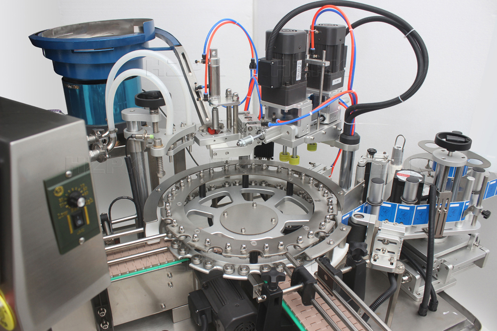 This automatic filling and sealing machine is mainly used for filling liquid into vials, such as water, essential oils and so on. Multi station turntable system, filling, feeding and capping caps ,labeling. The automatic feeding cap vibrator can be customized according to the cap .Touchscreen panel and plc control system, easy to operate, can be customized in multiple languages. Servo motor driving technology, which is stable and high accuracy. Machine body is made of high quality stainless steel, which is strong and where resistant.