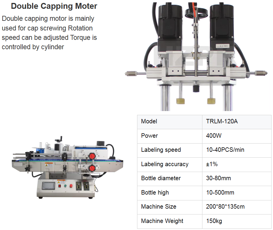 Tabletop packing machine line is mainly used for filling capping and labeling liquid into bottles, such as lotion, milk, water and other liquids.The packaging line is mainly suitable for filling small bottles within 500ml.It is widely used in food, beverage, cosmetics and chemical industries.